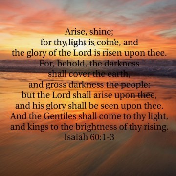 Arise, shine; for thy light is come, and the glory of the LORD is risen upon thee.