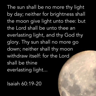 The sun shall be no more thy light by day; neither for brightness shall the moon give light unto thee: but the LORD shall be unto thee an everlasting light, and thy God thy glory.