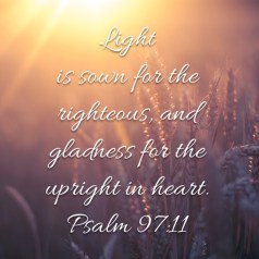 Truly, the terror-inspiring light of God’s holiness is the same light that produces the seeds sown in our lives. “Light is sown for the righteous.” We’ve already seen that God’s Word is our light – through our restored oneness with Him by the cross, His Spirit now dwells in us, bringing to remembrance His words. As we receive His words and meditate upon them day and night, they are seeds within us that will bring forth fruit in their season – some sooner, some later.