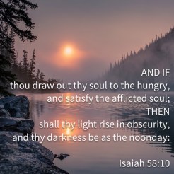 And if thou draw out thy soul to the hungry, and satisfy the afflicted soul; then shall thy light rise in obscurity, and thy darkness be as the noonday: