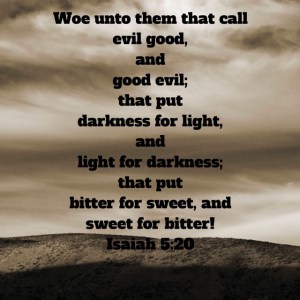 Woe unto them that call evil good, and good evil; that put darkness for light, and light for darkness; that put bitter for sweet, and sweet for bitter!