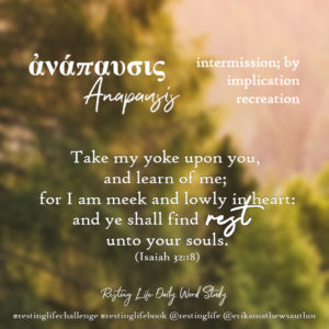Check out the short Hebrew and Greek word studies on different words that mean “rest” on her blog or Instagram.