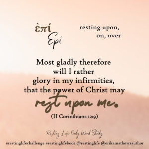 Epi is a preposition of rest: “resting on or upon.” We see this word used consistently in Scripture in the phrase “upon earth” or “on earth.” God has placed us on this earth and we are to rest upon it where He put us.