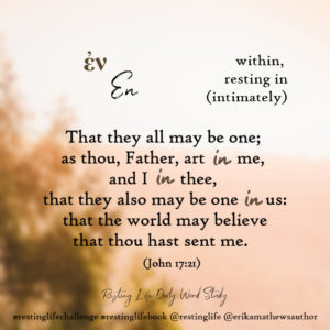 Our final Rest Word is a special one to celebrate release day: en. It’s another preposition of rest that means “resting in” and conveys the idea of intimacy.