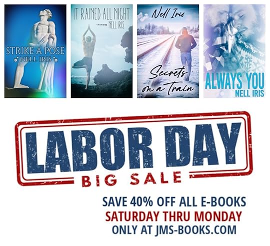 I’m popping in to tell you about the Labor Day Sale going on over at JMS Books: 40% off all ebooks thru Monday September 5. My books are of course included, so if there’s one (or ten