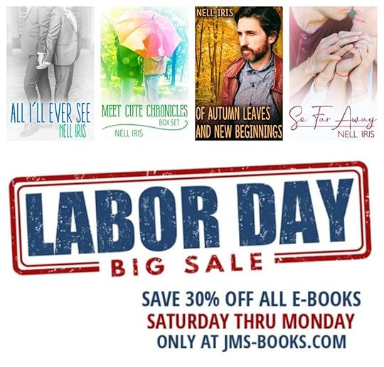 It’s book sale time again! Wohoo, we all love cheap books, right? One thing I love about JMS Books is that they offer sales frequently, so even if you have a tight book budget, there are always lots of opportunities to buy books at a lower price. And Labor Day is no exception. As always, pre-orders are included in the sale, so now’s the perfect time to buy my upcoming All I’ll Ever See, the extended (10k words added) re-write of my previously released short All I See.