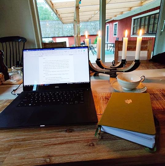 Yesterday morning’s writing happened at the kitchen table. My computer was already downstairs from the evening before, and I was in dire need of an ocean of tea, so I decided that it was best if I was close to the kettle. I spent three lovely hours with my best writing buddies; Ally and Ofelia/Holly, and when we closed down the morning office in favor of breakfast, I said I’ll definitely write more today, I have a deadline.