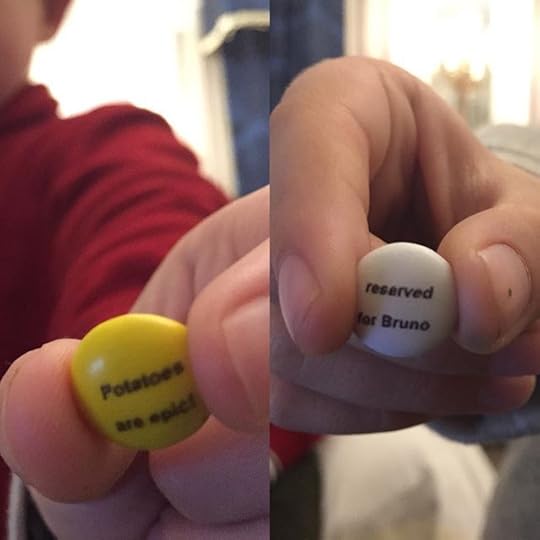 Personalized M&Ms and Augie marches to his own beat.