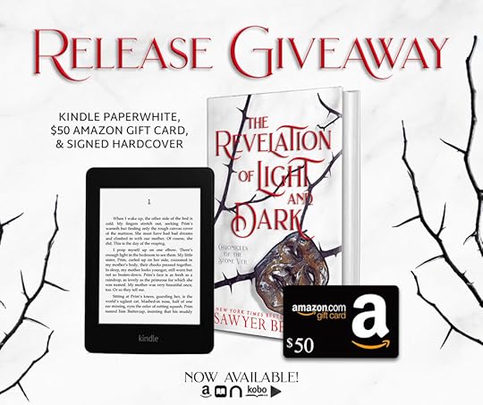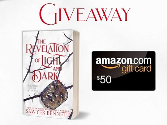Sawyer Bennett is giving away a signed paperback of the first book in the Chronicles of the Stone Veil series, The Revelation of Light and Dark, and a $50 Amazon Gift Card. Fill out the form to enter to win. Giveaway ends September 18th.