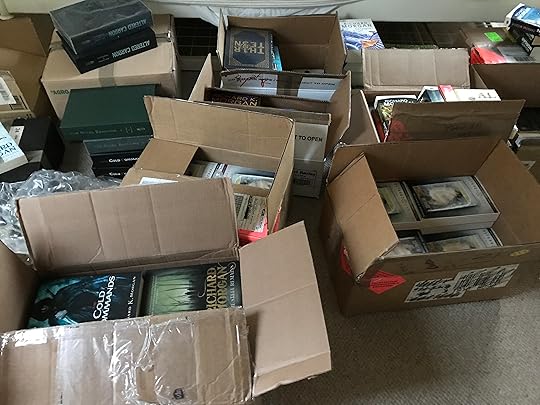 Which is to say it’s the time when I once again run out of feasible storage for my author copies and have to send them on to owners who can care for them better than I – i.e. put them on a shelf in a heated room with air and light, instead of imprisoning them in brutal tightly packed cardboard cells in a cold and unlovely concrete floored outbuilding without possibility...