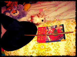 Daisy has just discovered Harry Potter and is totally smitten with Rowling’s creation. She can’t go anywhere without her invisibility cloak and wand.