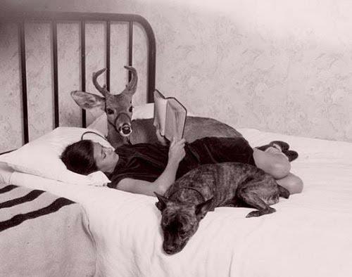 Thanks for your visit. Hope to see you again and in the meantime relax with a cup of chocolate or perhaps a good novel and a handsome deer in bed.