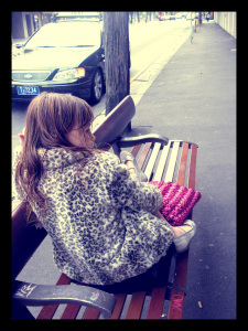 Here’s my daughter on her way to NIDA for Drama on the weekend. She loves her fake furs and swiping my vintage bags to walk around the streets pretending she’s a big girl.