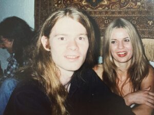 I miss my art school days, my studio space at COFA in Paddington,Sydney. The smell of turps, going to art galleries and rooftop art parties. Sometimes I regret not doing more with my BA (a lot of my year became teachers or professional artists) but I have to remind myself I wrote my dark fantasy trilogy – Circle of Nine – based on symbols that evolved during my course. David was in television production. I was at art school, working part-time cleaning hotel rooms. I rented a room in Paddington the size of a cupboard and shopped the local op shop where designer clothes were donated by affluent locals.I’d just had a bad car accident a few months before these photos. Three operations and a pin and plate installed in my right arm. I’m left handed, fortunately. David is holding my sling in one of the photos.
