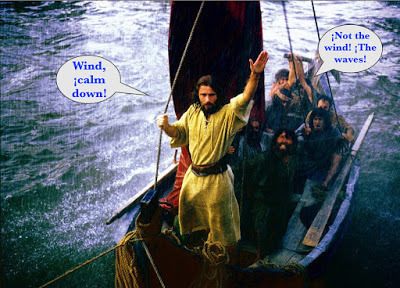 The account of Jesus calming the storm is told in the Gospel of Mark mentioning a detail in particular: that Jesus didn't rebuke the sea, but the wind (Mark 4:39). This is because the wind was what provoked the big waves that covered the boat. In other words, Jesus dealt with the cause of the problem and not just with the problem itself .