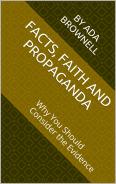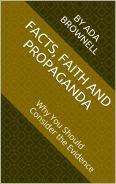 ********************************************************************Ada's latest book: FACTS, FAITH AND PROPAGANDA Scripture written by Peter: “For we did not follow cunningly devised fables”2 Peter 1:16 One from St. John: "That which we have heard, and we have seen with our eyes, which we have looked upon, and our eyes have handled, the Word of life; For the life was manifested, and we have seen it, and show unto you that eternal life, which was with (God the) Father, and was manifested unto us. That which we have seen and heard, we declare unto you, that you also may have fellowship with us: and truly our fellowship is with the Father and His Son Jesus Christ" (1 John 1-3).