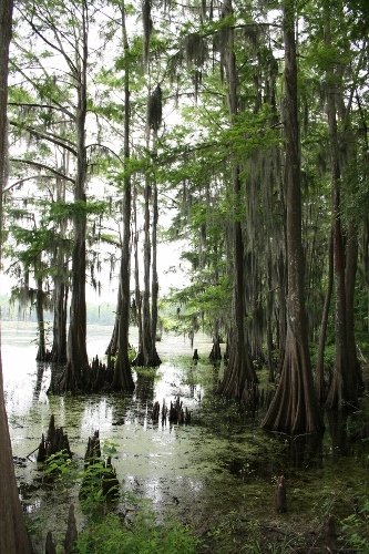 After one more unfruitful cast, faith in my fishing hole officially dies. I need to find a new place to dip my worm. I fire the motor and putt along the edge of the lake, maneuvering through a forest of stumps. Pushing the bow toward the bank, it caresses a cypress tree’s drapes of moss. A cascade of butterflies sweep the air.