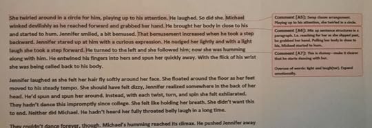 But a novelist, seeing these marks (no matter how daunting) has the potential to take a working paragraph and make it better. Going back to our example, as the writer here is one way I would rewrite the original version after seeing these comments: