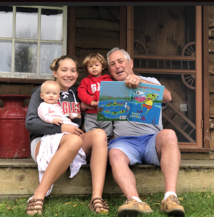 Mark Cooley, or Grump C, had a vivid dream that compelled him to write his first story, Goodnight Swogg the Silly Frog, for his three grandchildren, Hadley, Tommy and Ella.