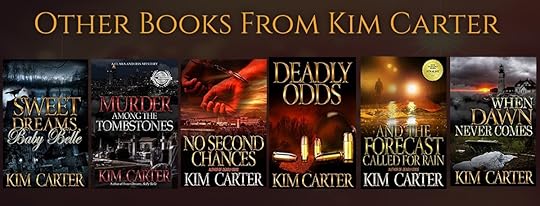 Kim Carter is an author of suspense, mystery and thriller novels. She was a finalist in the 2018 Killer Nashville Silver Falchion Award and recipient of the 2017 Readers’ Choice Award for her book Murder Among The Tombstones. This is the first book in her Clara and Iris Mystery series. The characters in this series are a couple of overly curious widows who become private investigators and were inspired by Kim’s mother and her mom’s best friend. Her other titles include: When Dawn Never Comes, Deadly Odds, No Second Chances, And The Forecast Called For Rain, and Sweet Dreams, Baby Belle.