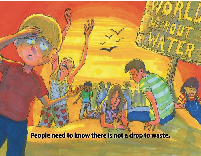 Story had a light yet meaningful message about the importance of water. It made it so that the world would be a scare place without it. Nice color schemes and dynamic poses in the illustrations. Humorous; a nice story kids will enjoy.
