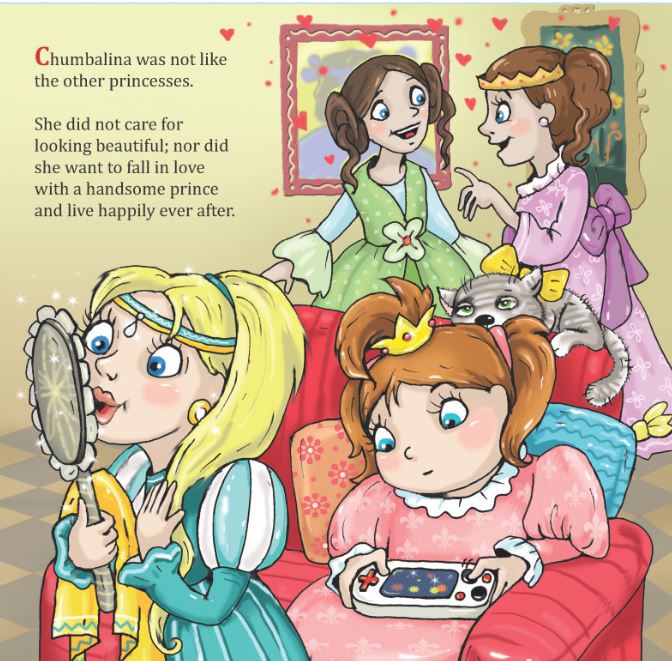I liked how Chumbalina is no ordinary princess, that she doesn’t care about being beautiful or finding a handsome prince; all she wants to be is herself, embracing her individuality. The thing that her “individuality” includes eating nothing but junk food, which concerned me as this might promote gluttony and obesity. Kids do not need to gorge on sweets, and I’m glad the author thought that as well by adding a twist that the eating contest would consist of eating nothing but vegetables. Again, the illustrations were cute and funny. I’m not too fond of princess stories, but it was alright.