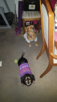 Lastly, this is my favorite memory of Katrina and Hazel wearing some Bieber related shirts in support of Justin on his birthday. The picture on the left is cute because you can see Katrina posing with her tale wagging. She thought I was taking a video. And then they both posed to show the back of the shirts.