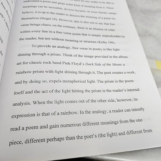 James W. A. writes of the freedom from rules and counted meter with the poet’s choice of free verse and also shares how that freedom then trickles down to the reader who can then interpret the poem as they see fit even if it differs from the way the poet intended it.
