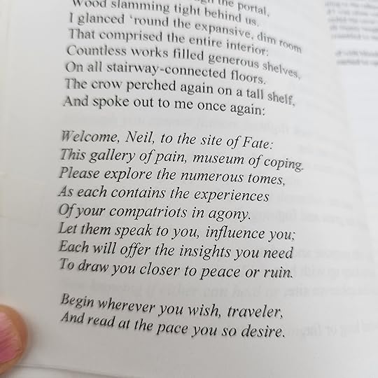 Venturing to check on my own poetry collection at the local library, I happened upon another local poet’s collection. Checking it out, I was immersed in a short narrative poetry experience that reminded me of one of my favorite childhood books that became a movie The NeverEnding Story.