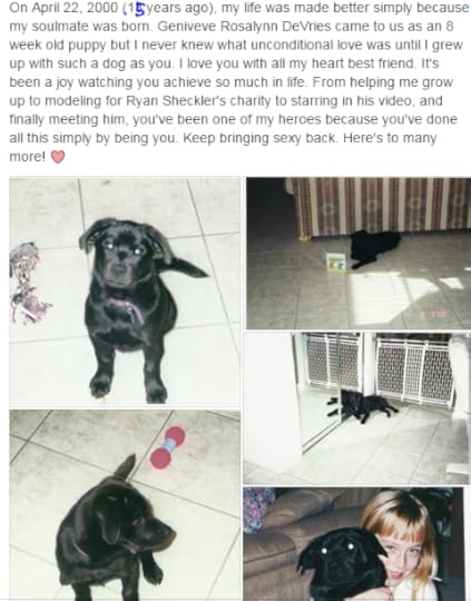 Today, I write you regarding a very special occasion. My best friend and dog Geniveve turns 15 today! In case you've never met Geniveve, she's a black lab chow mix that I've had since before I turned ten. And we quickly became best friends. Around the time we got her, I was obsessed with the movie Madeline and decided Geniveve would be a perfect fit for my first pet.