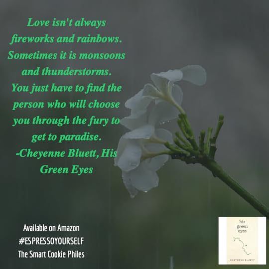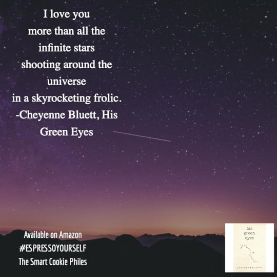 Opening His Green Eyes, I was taken on a poetic journey of the depths of true love, something that writers have a fondness for attempting to understand by giving it a rhyme or a reason.