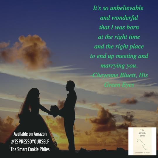 Reading His Green Eyes the reader is taken deep into the heart of the love and admiration for Bluett’s real life husband Robbie.
