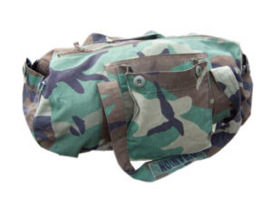 This picture is of an army jacket refashioned into a duffle bag. There are dozens of upcycling projects you can do, either by yourself (if you’re handy with needle and thread!), or with the help of a local tailor. I’ve had great success finding creative partners online.