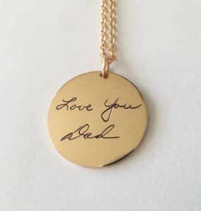 Consider engraving a new or existing piece of jewelry with their loved one’s handwriting. Simply take a note or letter with their loved one’s signature and bring it to a jeweler. Jewelers can etch names and shapes (smiley faces and hearts they may have drawn) into virtually anything — charms, cuff links, and bracelets. I discuss this idea and other great strategies in my book, Passed and Present: Keeping Memories of Loved Ones Alive .
