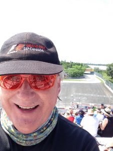 When John went to the Grand Prix Montreal, he took the orange glasses we’d sent him as a thank-you gift. What better way to watch the Grand Prix than through orange glasses?