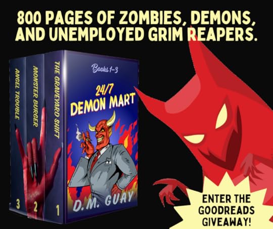 Because I am giving away 100 ebook copies of the 24/7 Demon Mart Monster Box Set: Books 1-3. The Goodreads Giveaway goes live tomorrow, August 25 and ends September 24.