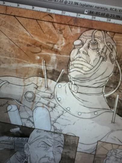 EStamos a punto de terminar los colores de PDK, quedan pocas páginas y comienza el proceso de rotulado. El resto del libro está terminado, los extras, el guión, el proceso de pintado, los bocetos, los fanarts y otras sorpresas. Pero el cómic en si está naciendo todavía.