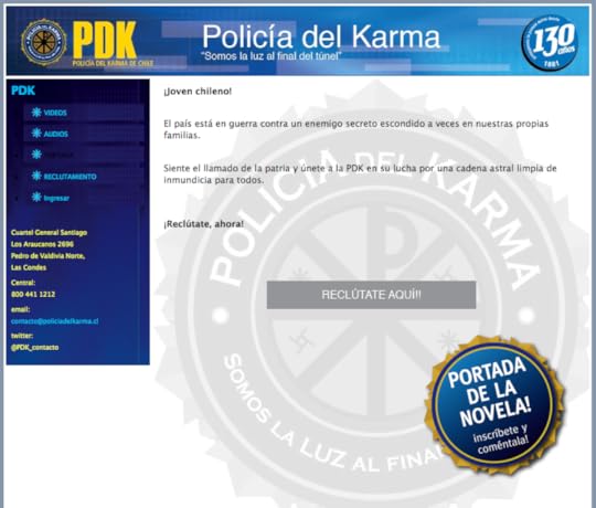 La página donde cualquier bien nacido de nuestra patria puede reclutarse en la POLICÍA DEL KARMA y cumplir su destino. Alojó también el foro donde discutimos y definimos junto a la comunidad inscrita la portada de la novela y muchos pudieron conocer quién había sido en una vida pasada con el método Engel-Ortega (aunque muchos preferirían no haberlo sabido XD).