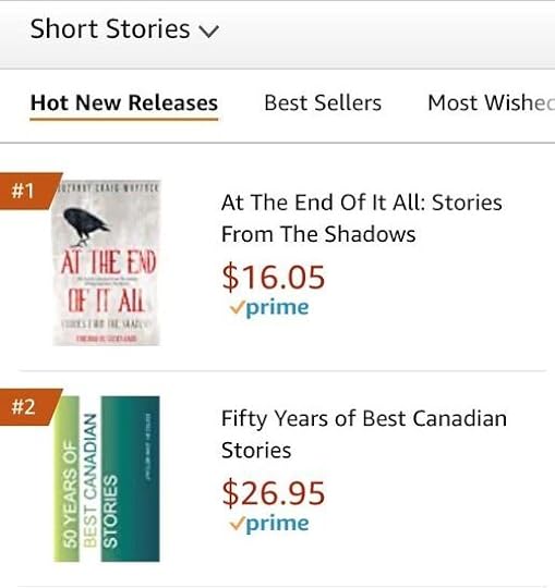 In other news, my new short story collection At The End Of It All came out last Tuesday, as you might have read, and I was completely floored when I saw that it debuted at Number 1 on Amazon’s Hot New Releases Chart. And it stayed at Number 1 for most of the day before being supplanted, so despite reeking like the corpse of a gingerbread man who has been embalmed in maple syrup, I was pretty excited. I know a few of you have started reading it—I hope that if you like it, you can give it quick review. It would mean a lot.