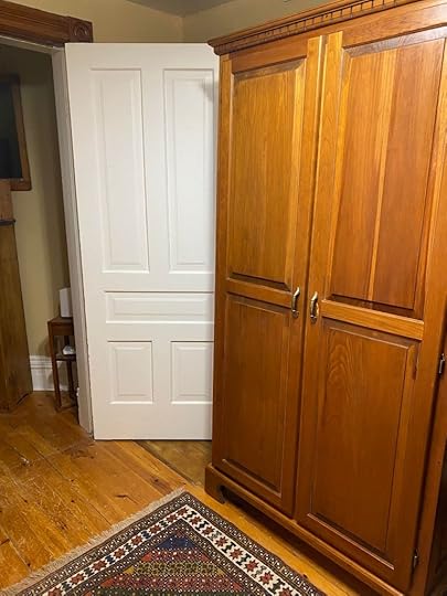 We picked up the wardrobe from the very elderly parents of the guy who lived in my parents’ building. They were literally adorable, both in their 90s. He insisted on helping Ken and his son carry the wardrobe out to our trailer, while she insisted on showing me their house, including the rugs that she’d hand-knotted herself. We promised to send pictures of the wardrobe in place once we’d completed the project. And so the process began, as most home renovations do, in the ‘one thing leads to another’ school of fix-it projects.