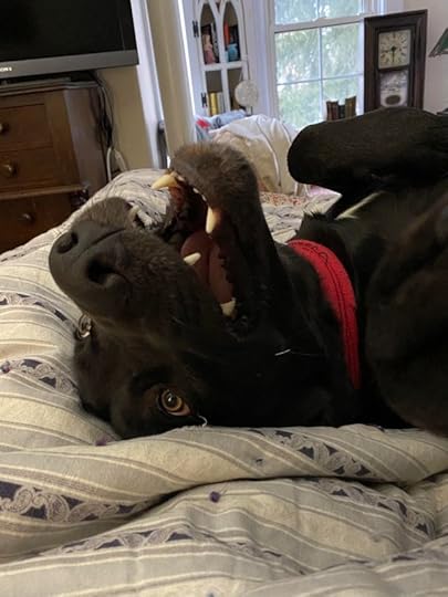 But then I realized that if I didn’t abide by the vet’s advice, not only would I face the wrath of Katelyn, but his ears wouldn’t get any better. I started hiding in the bathroom to eat breakfast, and at dinner, we were steadfast. After a few days, he was eating his kibble regularly but he was still mopey, so we went out and bought him some stuffies—a hedgehog, a fish, and an alligator that was advertised as a “tough toy”. He doesn’t normally get things like this because he immediately rips them apart and tries to eat the stuffing out of them, but this time, he was so overjoyed at being given SOME kind of treat that he carried the hedgehog around with him for a couple of days like it was his baby before attacking it and shredding it. Same with the fish. But by the time he’d massacred the alligator (tough toy, my *ss), the week was up. Kate and Ken brought him back from the vet appointment with the joyous news that his ears were all cleared up, and that he could have some treats, but nothing processed, no chicken, and no wheat. I don’t know who was happier: