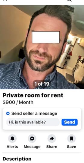While the above ad is weird in its own way, this next ad freaked me out. One would think that when one was trying to rent a private room, that the picture would be OF the room, not of some dude giving off a definite serial killer vibe. Of course, the ad says there are 18 more pictures but I was too scared to look. Also, I put the bar over his eyes to protect his identity, but they were HAUNTED.