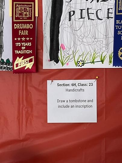 And speaking of bizarre things that will freak you out, yesterday I went over to the local fall fair. It’s a typical fall fair with competitions in different categories like best quilt, antique stumper, largest pumpkin, and whatnot. And there’s also a school competition where the students at the local public school are given categories of their own to enter. I was having a lovely time checking out the paintings, best popsicle stick structure and so on, and then I came across this:
