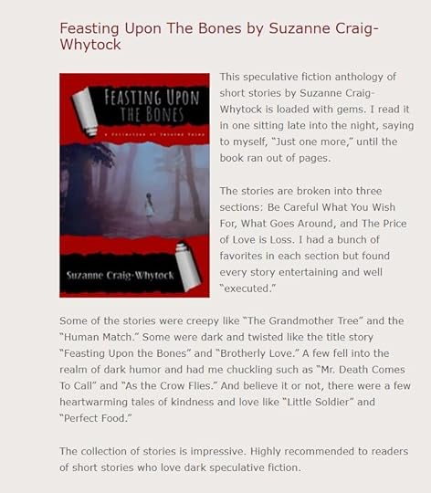 Thank you so much to award-winning writer and blogger D. Wallace Peach for a wonderful review of Feasting Upon The Bones! Diana is incredibly supportive of authors and the blogging community and if you’re not following her, you should be! You can read all of her reviews here: Myths of the Mirror August Book Reviews: Part 2 , or the one specific to Feasting below: