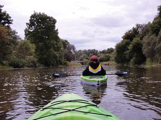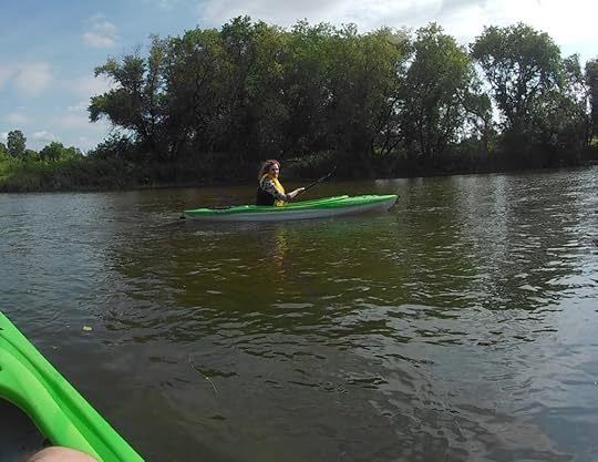 But then my desire to get a picture of all this chaos outweighed my fear, and I needed his camera to do that, and that doesn’t make me mercenary, just practical. Anyway, he managed to get upright, and pulled his kayak out of the water. Then there was the problem of DRAINING the kayak, which was full of water. Well, I guess people must capsize this particular brand of kayak A LOT because we discovered that there was a plug in the prow, specifically designed for draining. But there was a silver lining to all of this, because while I was waiting for Ken to recover, and get all the water out of his kayak, I had a chance to paddle around and get more comfortable.