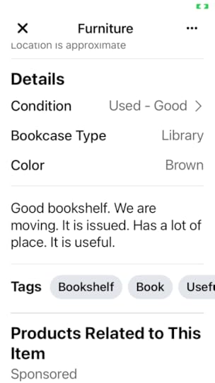 It wasn’t so much the bookshelf in this ad but the description, which reads “Good bookshelf. We are moving. It is issued. Has a lot of place. It is useful.” So, these people are moving due to some kind of decree? Is there a dude whose job it is to randomly evict people with bookshelves, like, “I see you have a good, useful bookshelf. I must demand that you move immediately. Leave the bookshelf behind in this place. I have spoken.” I hope he doesn’t find out how many bookshelves I have—I have no intention of moving.