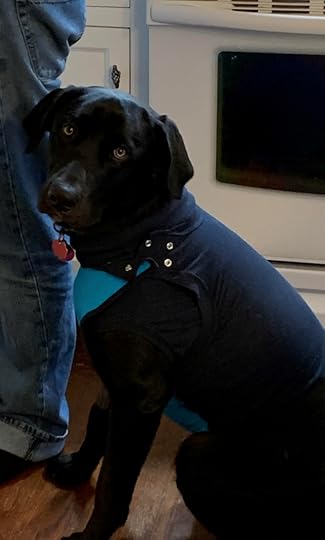 Do I have any pets? Here’s a picture. Note that Atlas is wearing a cute little onesie because he just got neutered. He’s not impressed, but as I keep telling him, “It’s better than a cone.” As he keeps telling me, “If you hadn’t stolen my balls, the subject would be moot.”