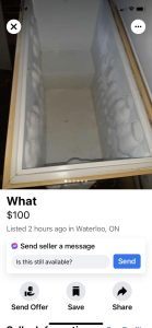 Not only is it the longest title for an ad, I think it’s a little misleading. That puppy is NOT made of brass and I don’t see any damn eagle tops anywhere. I know you’re not allowed to sell pets on Facebook Marketplace, but if you’re going to try anyway, couldn’t you just advertise the puppy as Con Rear Stairs? Or a Temporary Sheep/Goat Fence?