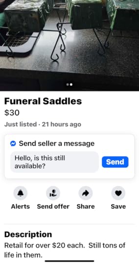 I don’t know what a ‘funeral saddle’ is, but I just love that the item description is “Still tons of life in them’. Unlike the people that the funerals are for.
