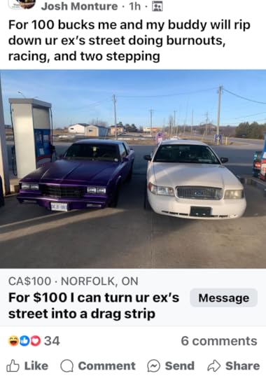 And finally, from the geniuses that brought you the Face-Eating Leopard Party, here’s an ad that I like to call “How f*cking stupid are you?” This is an offer to do several illegal stunt driving tricks that will not only get your license suspended but may even get you some jail time—if you’re caught. WILL they be caught? Well, illiterate Mensa champion Josh, who posted this ad, not only provided his OWN NAME, but also the license plate number of the car ‘me and my buddy’ are going to use to annoy ‘ur’ ex, as well as their location. All for the low, low price of 100 bucks. Cue police sirens…
